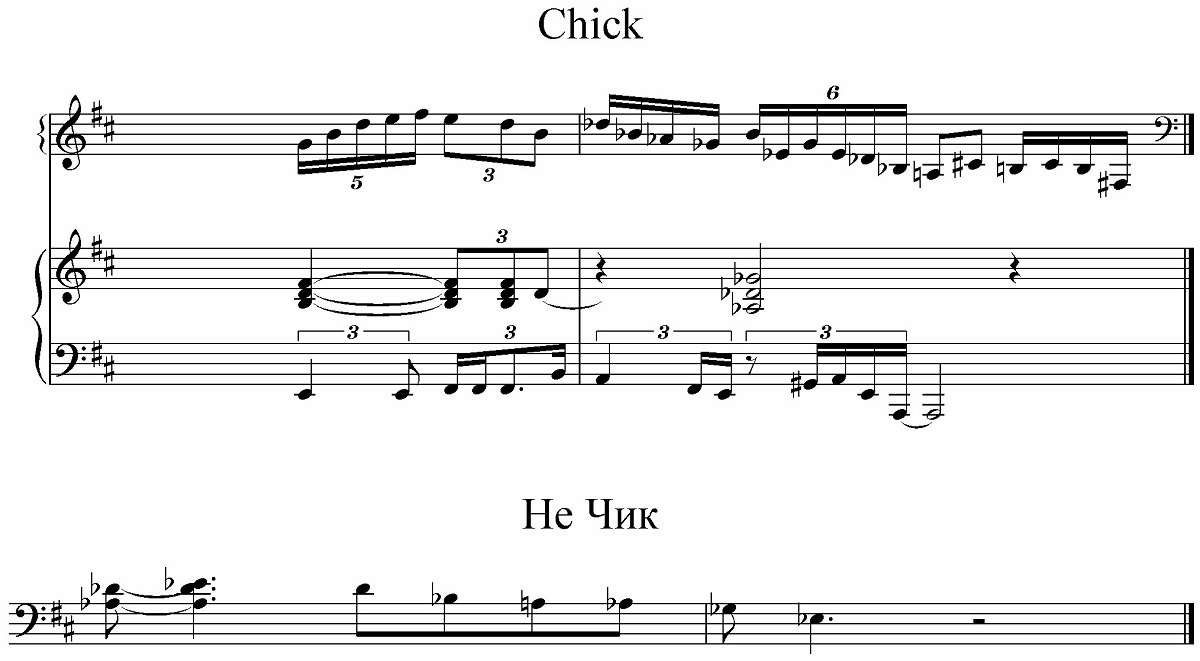 на сильной доле фортепиано играет Bm, а контрабас дает ясный Е на относительно сильной доле.