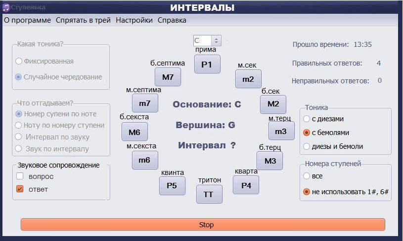- Задается интервал - надо нажать ноту.
