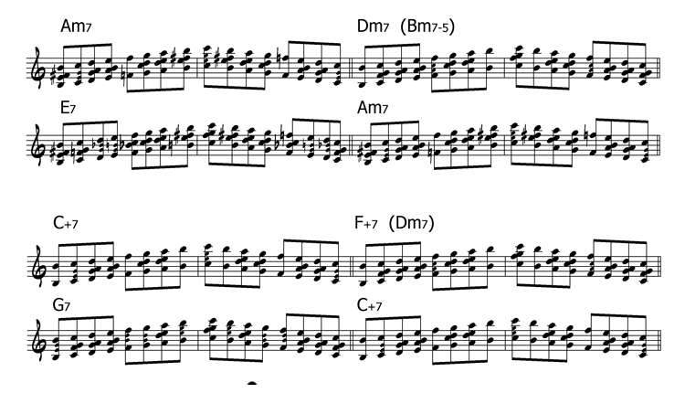Bb | - интересная секвенция: Bb - тритоновая замена E7, Am7 - отлично заменяет C.