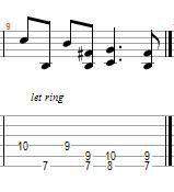 По табам это 3 струна 9-2 потом 7-2 потом 4-2 (звучит как нада, но блин аппликатура) а дальше на 4й 10-3 и 12-3. Дык вот какая там аппликатура правильная?