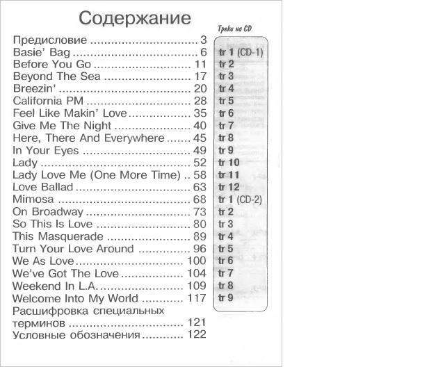Цитата: the_band от Сентября 01, 2006, 08:55:142 Euiclid а вот за Бенсона спасибо тебе друг:)а минусов нет?Какие именно там песни? Есть Breezin'Еще несколько минусов скоро залью на JamTracks, потерпи немного Кстати, а у тебя есть подобные минуса - Benson, Grant Green, и т.п.?вот список, думаю можно поискать где-нибудь на просторах инета беки к этой книгесмотри личку