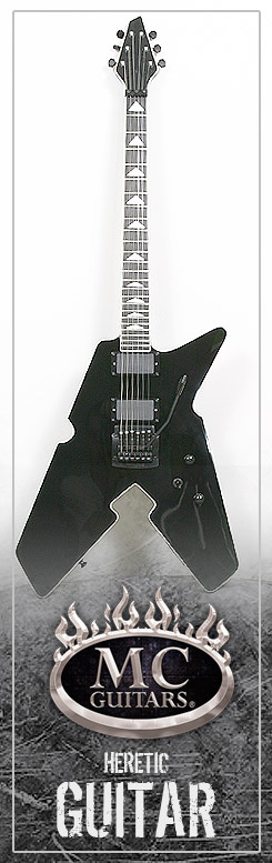 Custom graphics are also available upon request. The Heretic™ Custom comes standard with a specially designed deluxe plush lined ATA flight case. All MC Guitars™ are hand crafted in the USA.