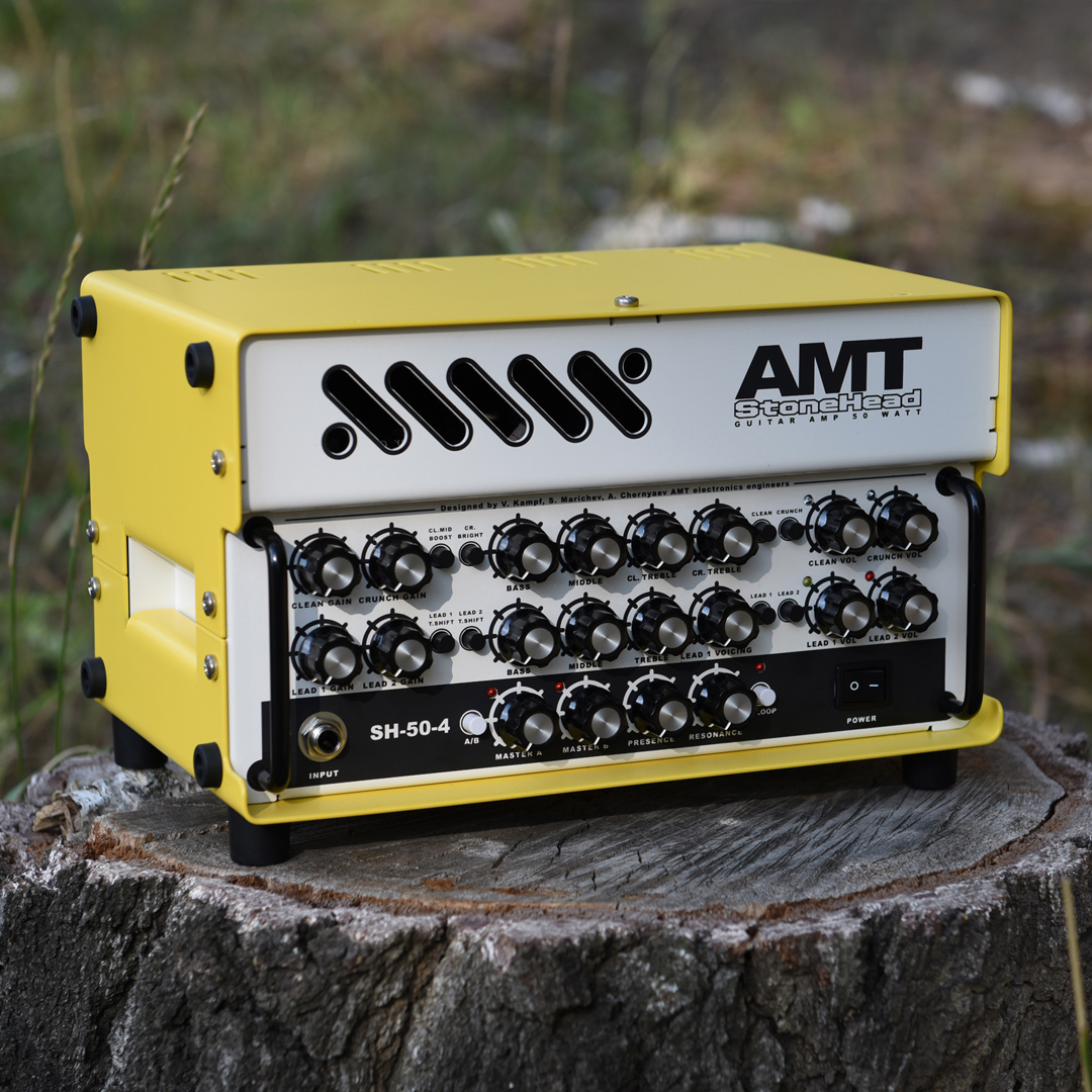 AMT Electronics SH-50-4 StoneHead – это 50-Ваттный 4-канальный транзисторный гитарный усилитель, основанный на оригинальной технологии аналогового моделирования вакуумных ламп полевыми транзисторами и заключенный в легкий, компактный корпус.